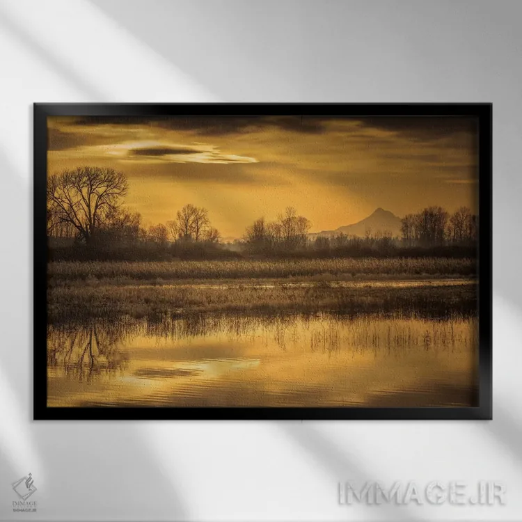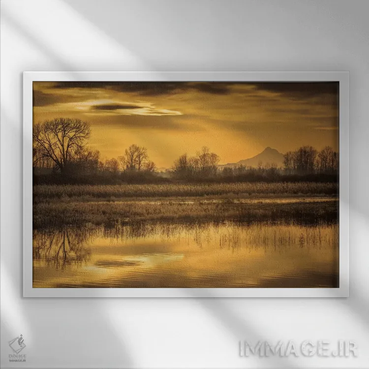 براساس پالت گرم اثر، قاب بلوط روشن (چوبی) پیشنهاد اول است و استخوانی ملایم مکمل. برای سفارشهای پروژهای با ابعاد و قابهای اختصاصی با ایماژ در تماس باشید.