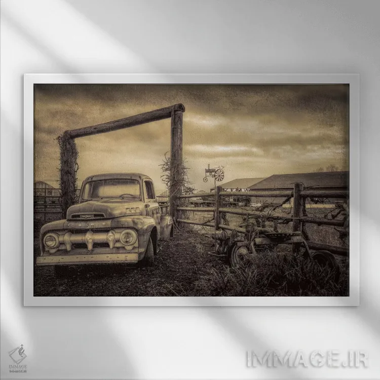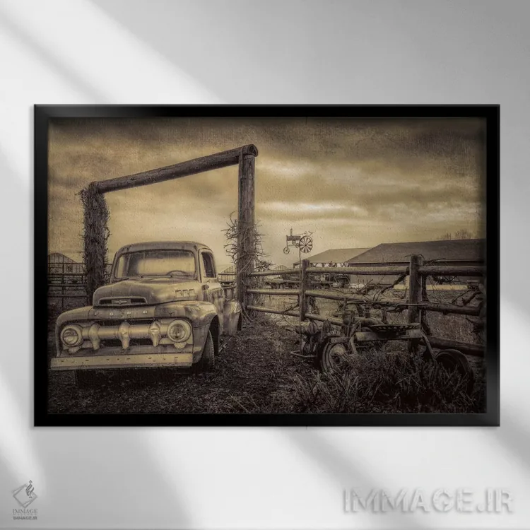«فورد قدیمی در مزرعه» اثرِ «دان شوارتز» با حالوهوای این اثر، برای بالای کنسول یا کنار قابهای ساده، ترکیب چشمنوازی میسازد.