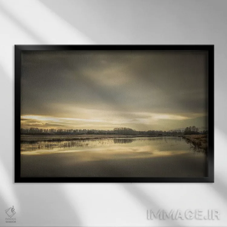 براساس پالت گرم اثر، قاب بلوط روشن (چوبی) پیشنهاد اول است و استخوانی ملایم مکمل. برای سفارشهای پروژهای با ابعاد و قابهای اختصاصی با ایماژ در تماس باشید.