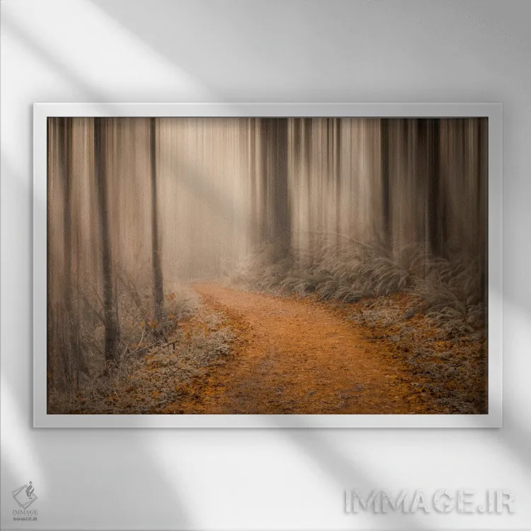براساس پالت گرم اثر، قاب بلوط روشن (چوبی) پیشنهاد اول است و استخوانی ملایم مکمل. برای سفارشهای پروژهای با ابعاد و قابهای اختصاصی با ایماژ در تماس باشید.