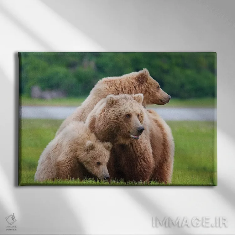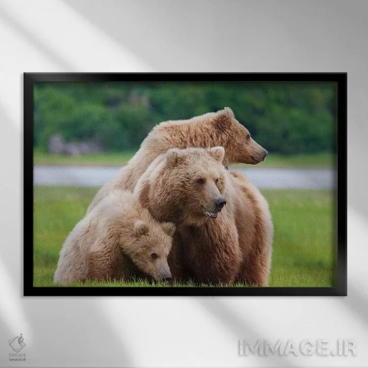 برای دیوارهای ساده، «خرس قهوهای ساحلی با دو توله بهاریاش در هالو بی، پارک ملی کاتمای، آلاسکا» اثرِ «دیزاین پیکس» فضا را صمیمیتر و دعوتکنندهتر نشان میدهد؛ برای اتاق کودک (بدون لحن کودکانه) انتخابی خوشسلیقه است. با قاب چوبی یا مشکی، حس مرتبتری پیدا میکند.