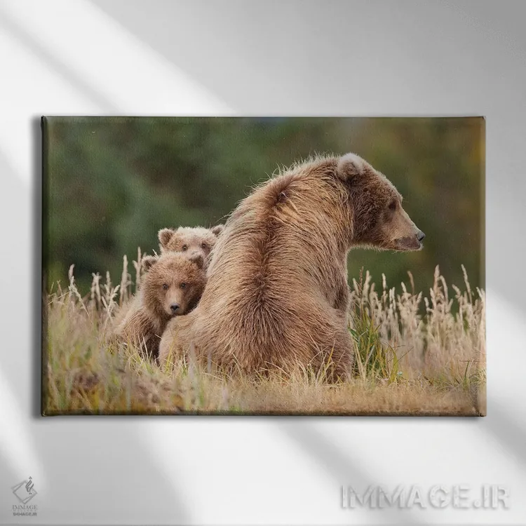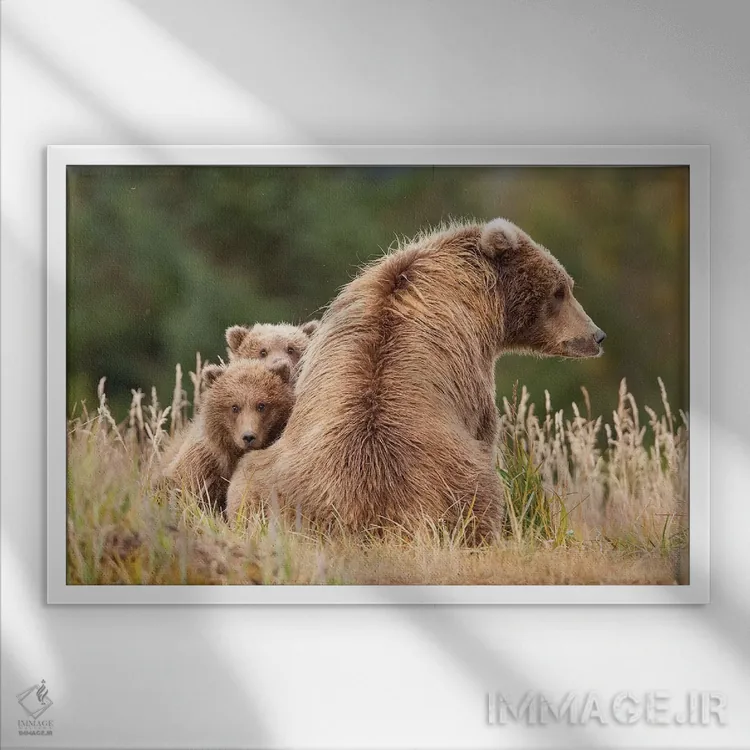 اگر میخواهید دیوار کمی سرزندگیِ محترمانه داشته باشد، «خرس گریزلی ساحلی با تولههایش در هالو بی، پارک ملی کاتمای آلاسکا» اثرِ «دیزاین پیکس» حس طبیعت را بیدغدغه وارد خانه میکند، برای دیوار کنار میز کار گزینهٔ مناسبیست. به دیوار، قصه میدهد—اما قصهای آرام و شیک.