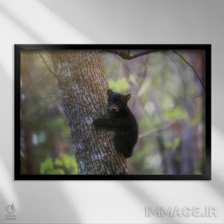 تابلو توله خرس سیاه در کیدز کوو اثر دن اسپرول - نمای قاب‌دار مشکی