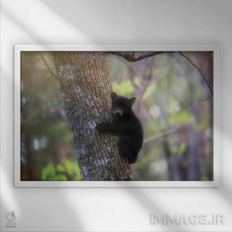تابلو توله خرس سیاه در کیدز کوو اثر دن اسپرول - نمای قاب‌دار سفید