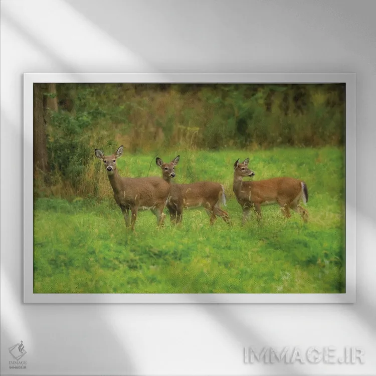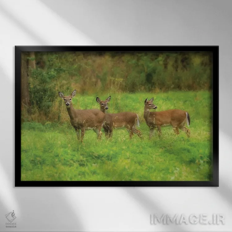 اگر میخواهید دیوار کمی سرزندگیِ محترمانه داشته باشد، «سه گوزن» اثرِ «دن اسپرول» یک لبخند ریز به چیدمان میدهد، برای راهروها و ورودیهای گرم گزینهٔ مناسبیست. در کنار گیاهان و نور طبیعی، جذابتر هم میشود.
