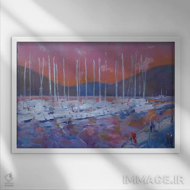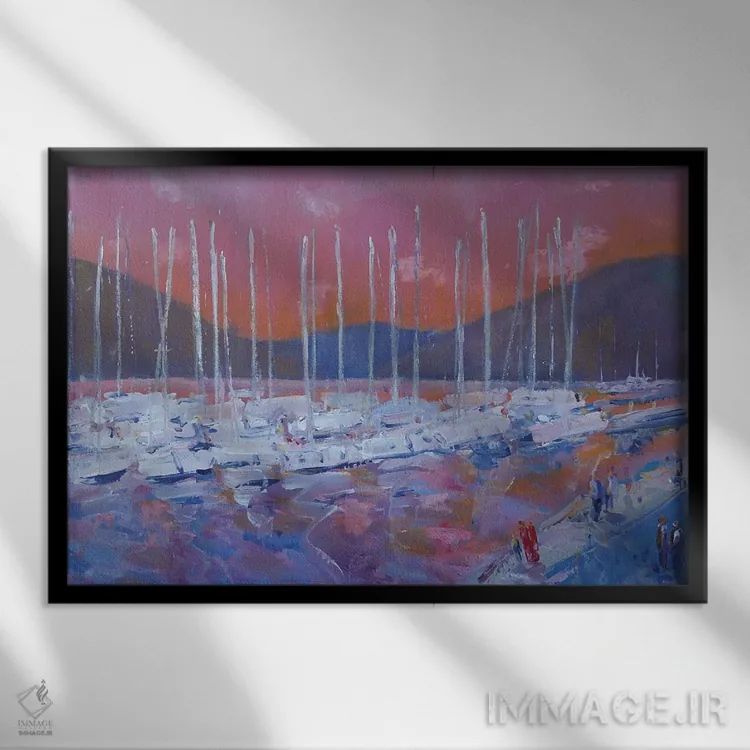 براساس پالت ترکیبی اثر، قاب تیک گرم (چوبی) پیشنهاد اول است و مشکی مات (فریم متوسط) مکمل. برای سفارشهای پروژهای با ابعاد و قابهای اختصاصی با ایماژ در تماس باشید.
