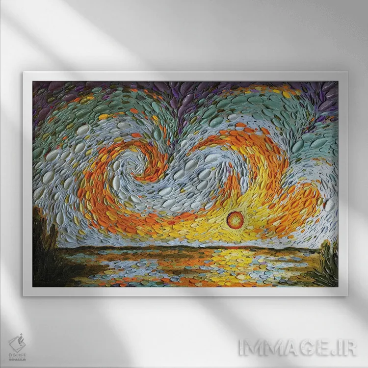 براساس پالت گرم اثر، قاب تیک گرم (چوبی) پیشنهاد اول است و مشکی مات (فریم متوسط) مکمل. برای سفارشهای پروژهای با ابعاد و قابهای اختصاصی با ایماژ در تماس باشید.