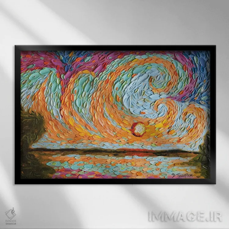 براساس پالت ترکیبی اثر، قاب تیک گرم (چوبی) پیشنهاد اول است و مشکی مات (فریم متوسط) مکمل. برای سفارشهای پروژهای با ابعاد و قابهای اختصاصی با ایماژ در تماس باشید.