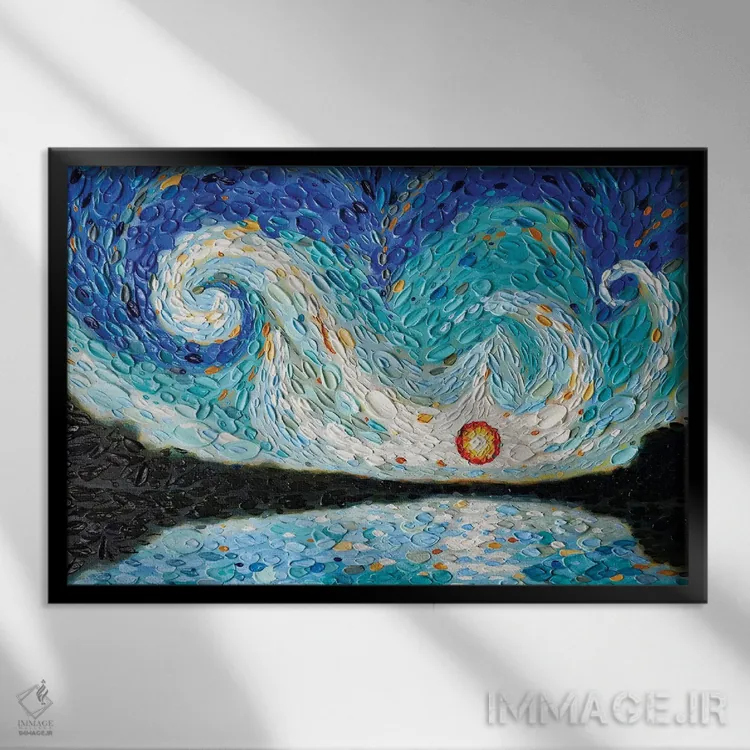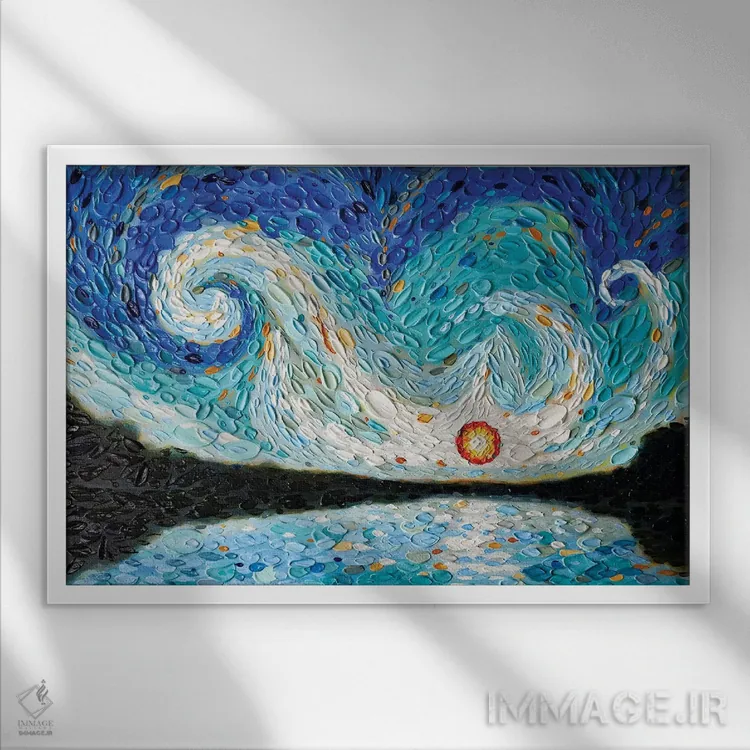 براساس پالت سرد اثر، قاب سفید مات (فریم باریک) پیشنهاد اول است و نقرهای برسخورده (متالیک) مکمل. برای سفارشهای پروژهای با ابعاد و قابهای اختصاصی با ایماژ در تماس باشید.