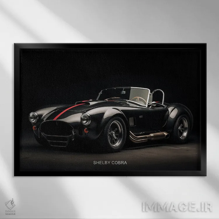 این تابلو تزئینی با موضوعِ این اثر برای هدیه و دکورهای روشن همیشه جواب میدهد: «ماشین شلبی کبرا» اثرِ «دورو آرت (استودیو هنری)».