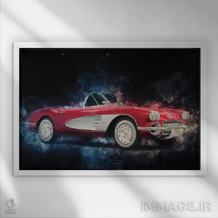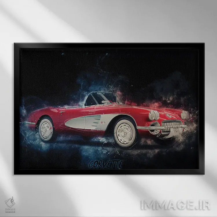 «کوروت (ماشین شورولت)» اثرِ «دورو آرت (استودیو هنری)» ترکیب خوبی برای کنار قابهای ساده و خطوط تمیزِ دکوراسیون است.