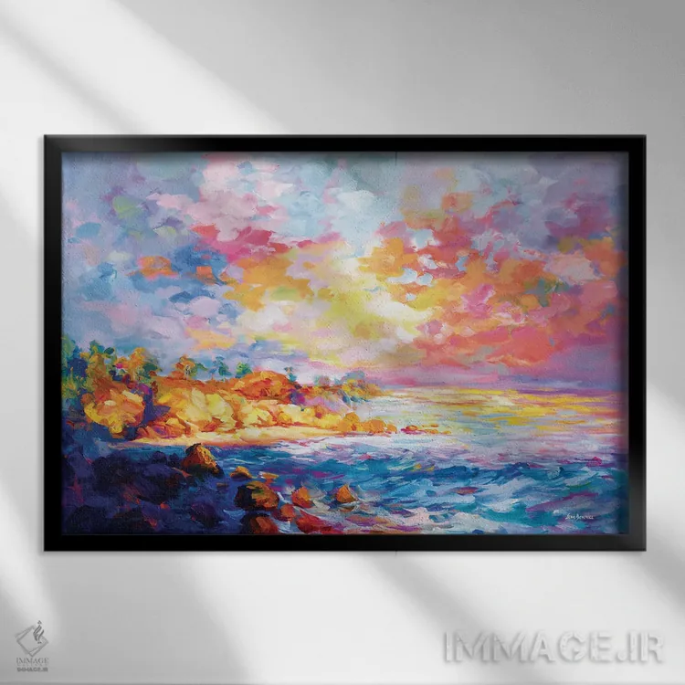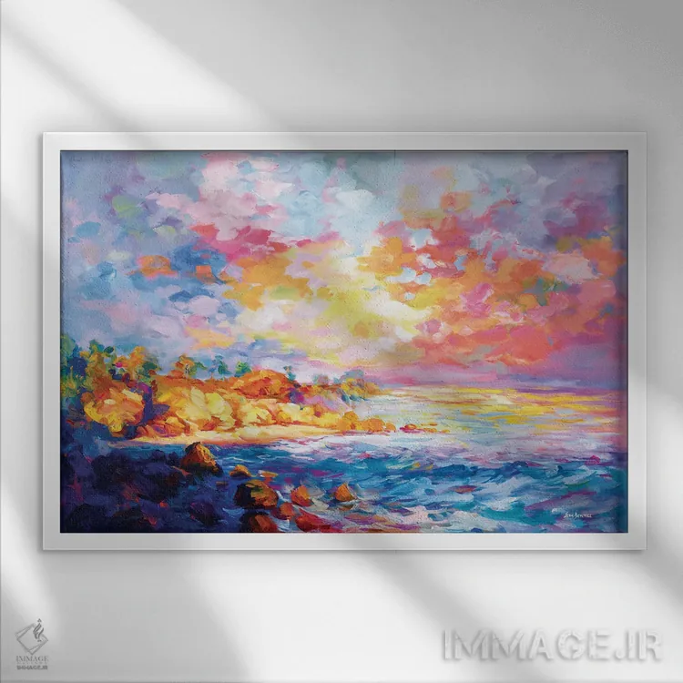 براساس پالت ترکیبی اثر، قاب تیک گرم (چوبی) پیشنهاد اول است و مشکی مات (فریم متوسط) مکمل. برای سفارشهای پروژهای با ابعاد و قابهای اختصاصی با ایماژ در تماس باشید.