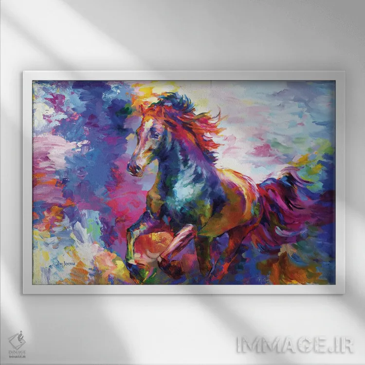تابلو دکوراتیو اسب انتزاعی رنگارنگ اثر لئون دوونیس
