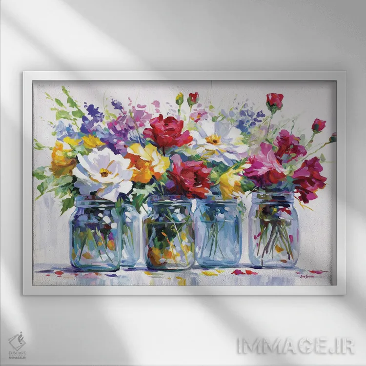 تابلو برداشت‌های پرجنب‌وجوش گل‌ها اثر لئون دوونیس - نمای قاب‌دار سفید