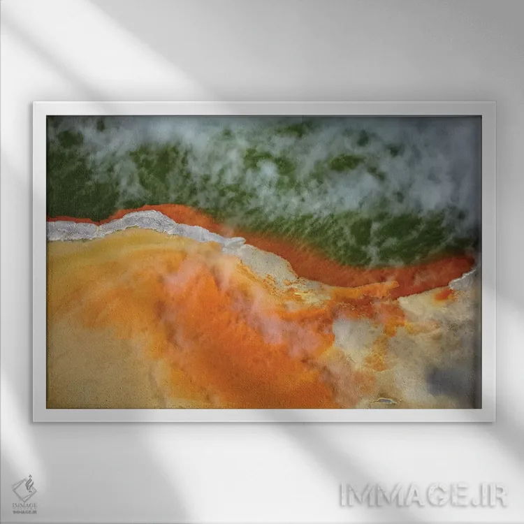 «حوض شامپاین و تابلوی هنرمندان، منطقه حرارتی وایوتاپو، نزدیک روتوروا، جزیره شمالی، نیوزیلند» اثرِ «دیوید وال» از آن انتخابهاییست که چیدمان را از حالت پراکنده خارج میکند؛ برای دیوار بالای کنسول یا شومینه انتخابی عالی است. در کنار نورپردازی نقطهای، جلوهاش حرفهایتر میشود.