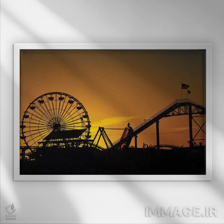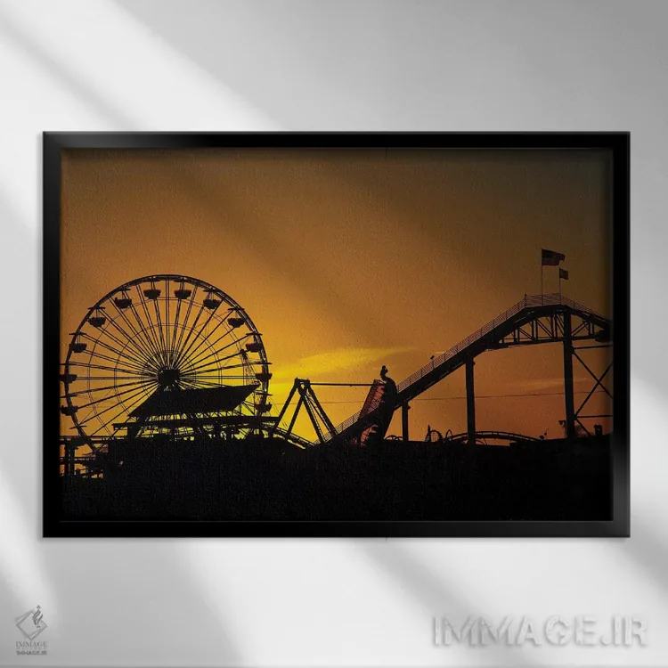 این تابلو با عنوان «چرخوفلک پاسیفیک و ترن هوایی غربی در غروب، اسکله سانتا مونیکا، کالیفرنیا، آمریکا» اثرِ «دیوید وال» در دکور، مثل یک امضای ظریف عمل میکند؛ برای فضاهای مدرن با خطوط ساده پیشنهاد میشود. هم از دور چشمگیر است و هم از نزدیک پرداخت دارد.