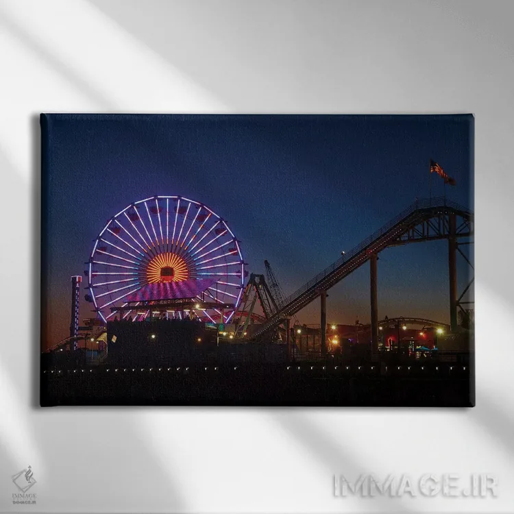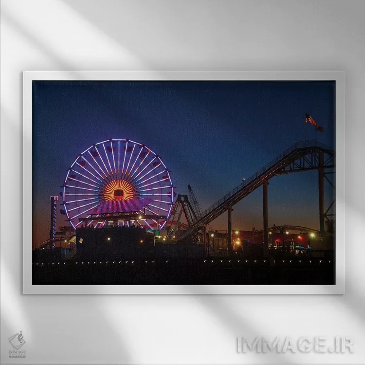 برای دیواری که میخواهید سلیقهتان را آرام و دقیق نشان بدهد، «چرخوفلک پاسیفیک و ترن غربی در شب، اسکله سانتا مونیکا، کالیفرنیا، آمریکا» اثرِ «دیوید وال» تضادهای رنگی را خوشقوارهتر میکند؛ برای اتاق خوابهای آرام و روشن پیشنهاد میشود. با نور گرم یا سرد، خوانایی و وقارش را حفظ میکند.