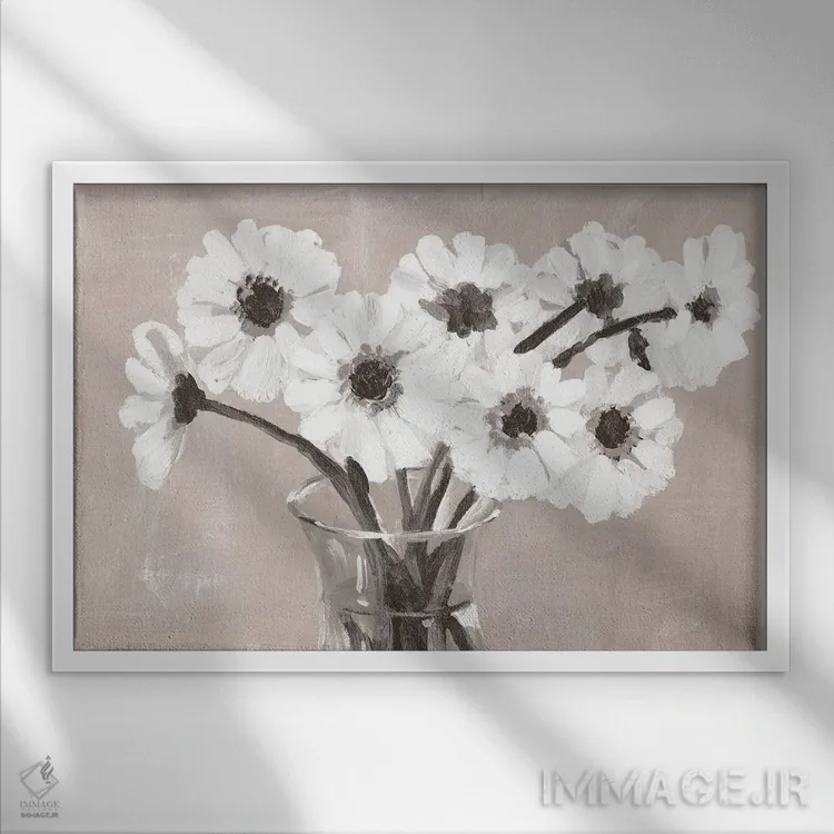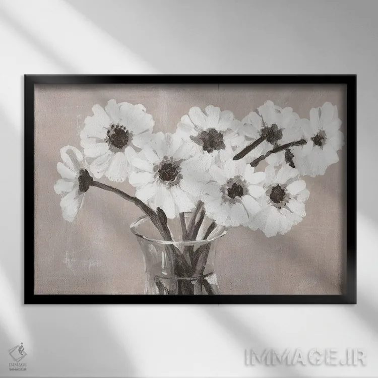 تابلو مدرن طرح گلدار به رنگ خاکستری-بژ اثر داگوود پورتفولیو