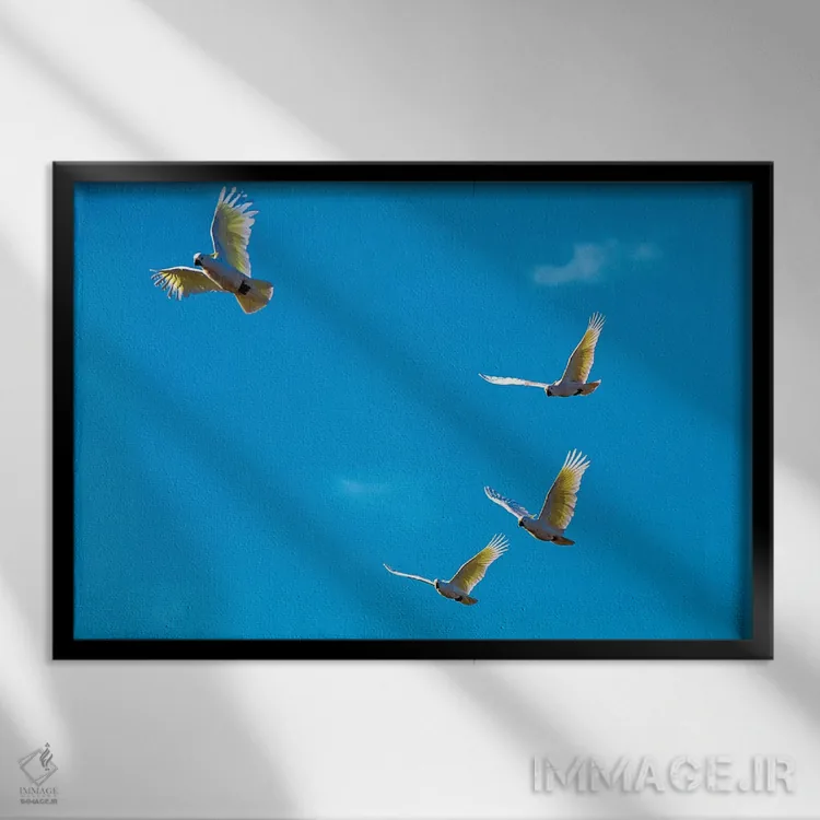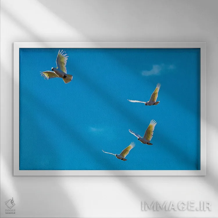 اگر میخواهید دیوار کمی سرزندگیِ محترمانه داشته باشد، «کاکاتوها در پرواز» اثرِ «دیوید وولَن» گرما و شخصیت به فضا اضافه میکند، برای اتاق کودک (بدون لحن کودکانه) گزینهٔ مناسبیست. هر بار نگاهش میکنید، یک جزئیات تازه به چشم میآید.