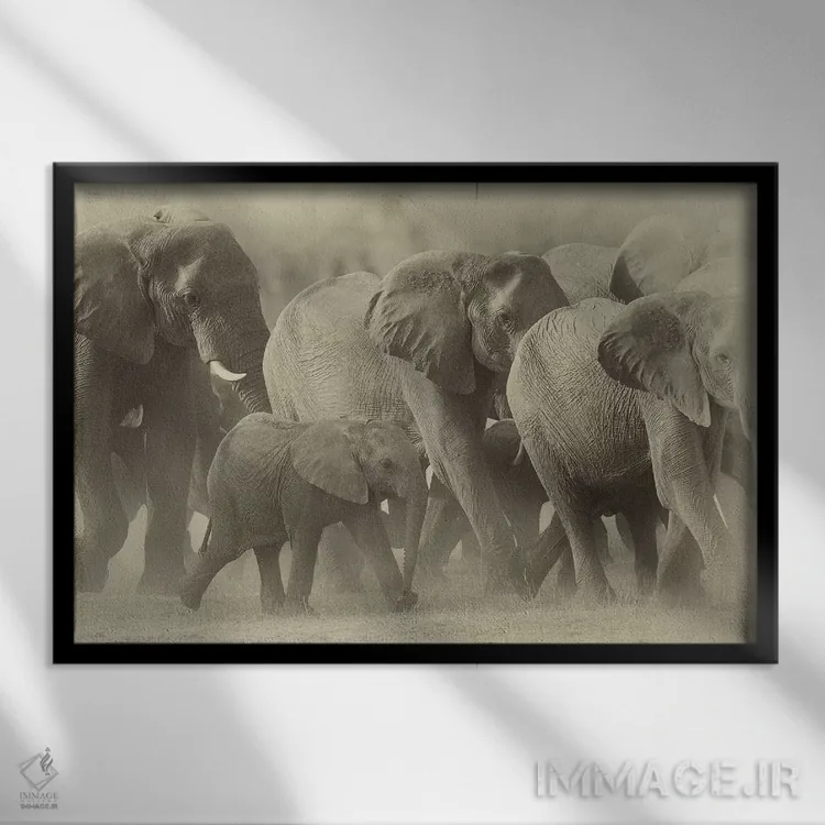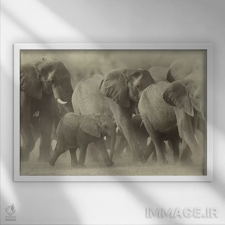 تابلو خانواده فیلها به رنگ سپیا اثر دیوید وولَن