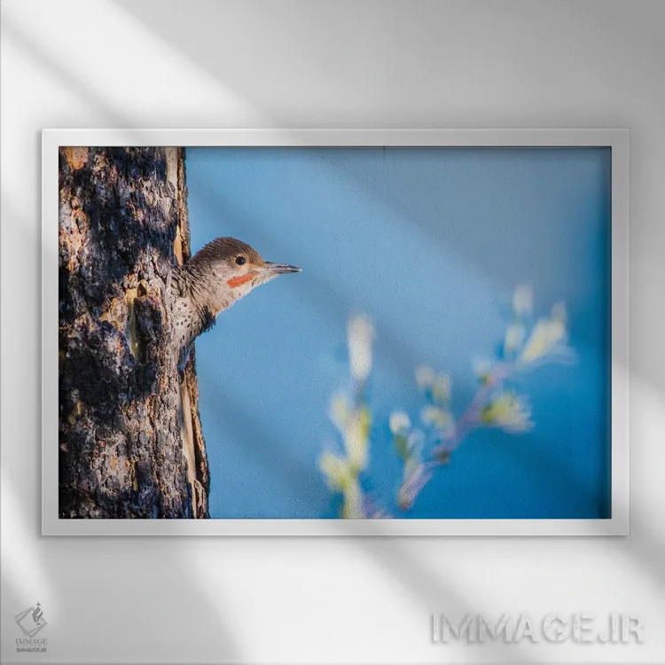 در «وایومینگ، شهرستان سابلت. نر جوان فلیکر شمالی از حفرهٔ لانهاش سرک میکشد» اثرِ «الیزابت بوم»، حضور حیوانات فضا را صمیمیتر و دعوتکنندهتر نشان میدهد؛ برای راهروها و ورودیهای گرم انتخابی خوشسلیقه است. در کنار گیاهان و نور طبیعی، جذابتر هم میشود.