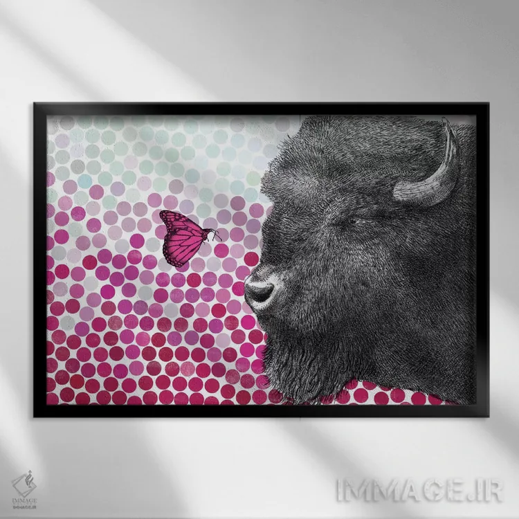 «گاومیش و پروانه دو» اثرِ «اریک فن» میتواند کنار اکسسوریهای ساده و رنگهای خنثی، یک نقطهی تاکید شاد و قابلکنترل بسازد.