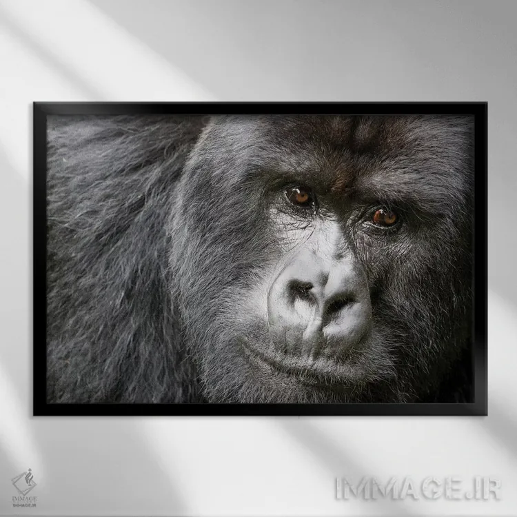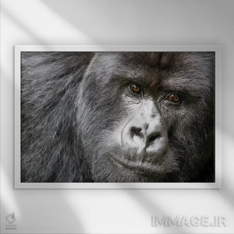 در «آفریقا، رواندا، پارک ملی آتشفشانها. پرترهٔ گوریل کوهستانی نر یک» اثرِ «الن گاف»، حضور حیوانات گرما و شخصیت به فضا اضافه میکند؛ برای دکورهای مدرن و مینیمال انتخابی خوشسلیقه است. هم فضا را گرم میکند، هم شلوغش نمیکند.