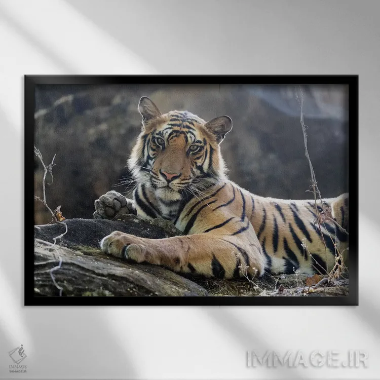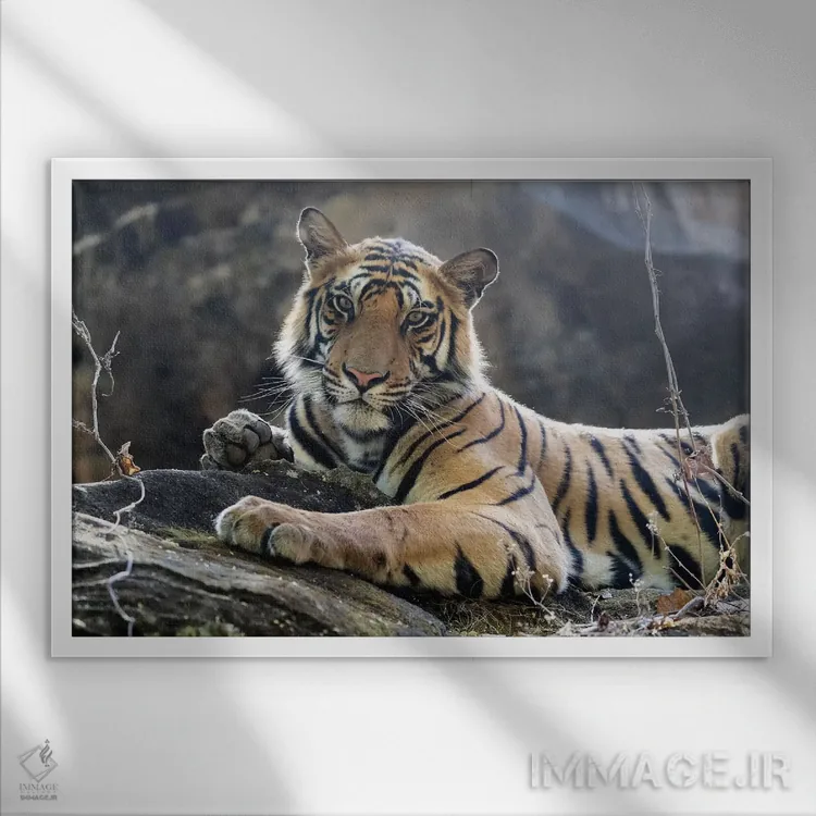 اگر میخواهید دیوار کمی سرزندگیِ محترمانه داشته باشد، «هند، مادیا پرادش، پارک ملی بندهاوگار. ببر بنگال جوان روی تختهسنگی خنک استراحت میکند» اثرِ «الن گاف» گرما و شخصیت به فضا اضافه میکند، برای اتاق کودک (بدون لحن کودکانه) گزینهٔ مناسبیست. هر بار نگاهش میکنید، یک جزئیات تازه به چشم میآید.