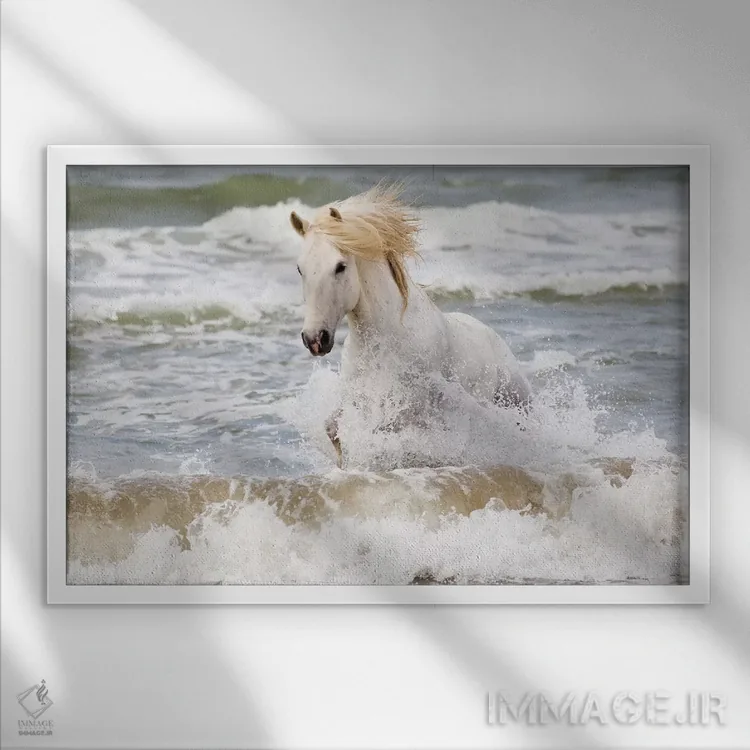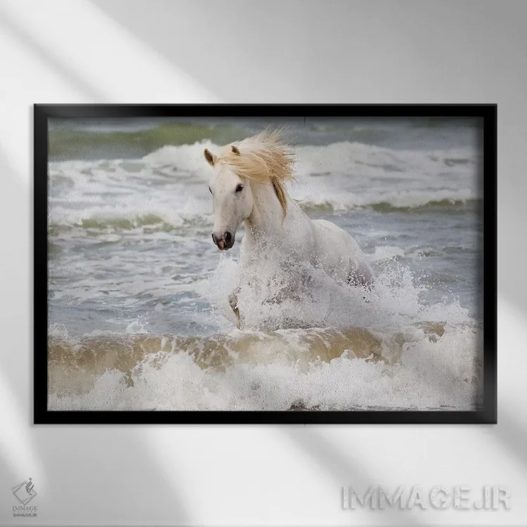 «فرانسه، کامارگ، سنت—ماری—دو—لا—مر. اسب کامارگ در دریای مدیترانه سه» اثرِ «الن گاف» از آن کارهاییست که به دیوار، انرژیِ نرم و زنده میدهد؛ برای کافههای کوچک و صمیمی انتخاب خوبیست. هم فضا را گرم میکند، هم شلوغش نمیکند.