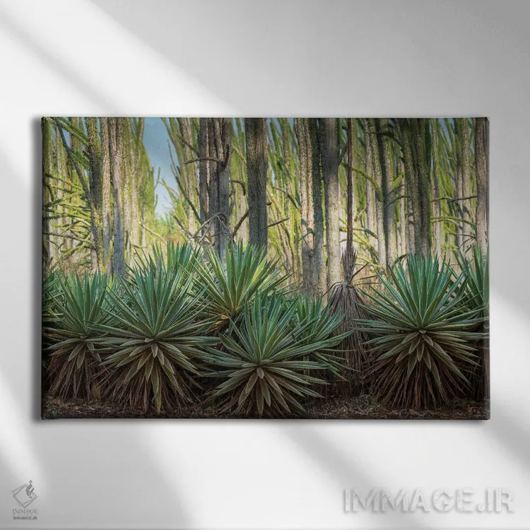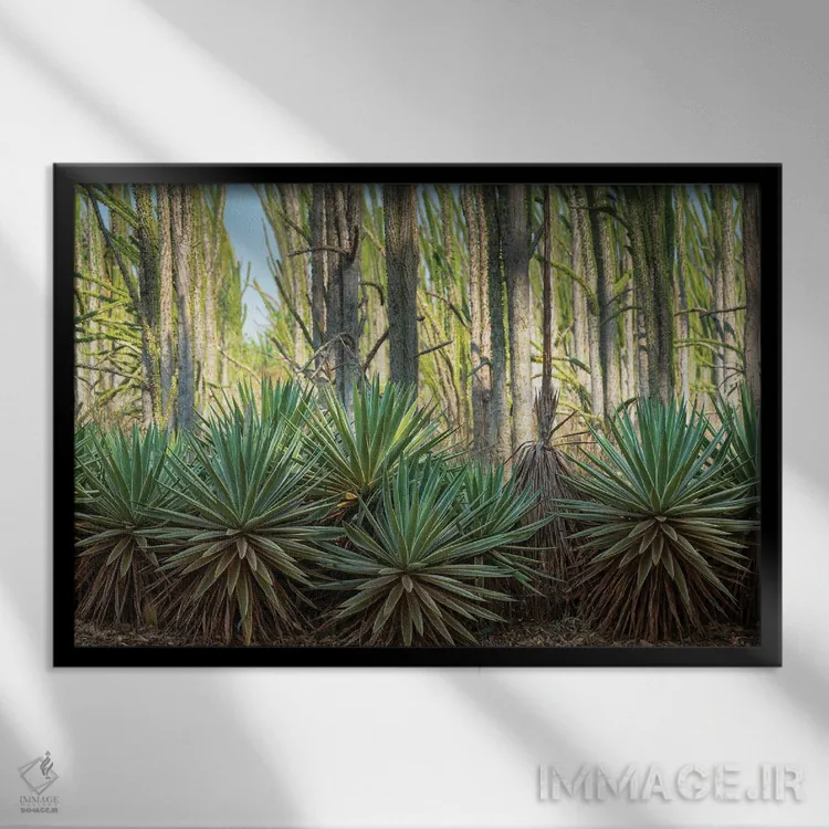 «آفریقا، ماداگاسکار، منطقه آنوسی، ذخیرهگاه برنتی، جنگل خاردار. گیاهان سیسال در حاشیه گیاهان برگریز قرار دارند» اثرِ «الن گاف» انتخابیست برای زمانی که اتاق را جمعوجورتر و مرتبتر نشان میدهد؛ برای نشیمنهای صمیمی و پذیراییهای شیک انتخابی عالی است. با نور گرم یا سرد، خوانایی و وقارش را حفظ میکند.