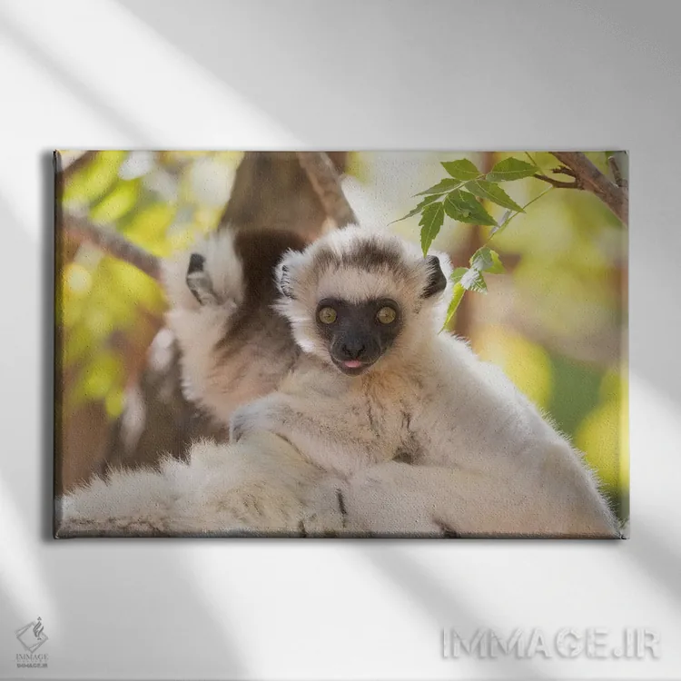 در نگاه اول، «ماداگاسکار، ذخیرهگاه برنتی. پرترهای از مادر سیفاکا وریو که بچهاش را حمل میکند (نوعی لمور)» اثرِ «الن گاف» ریتم فضا را منظم میکند؛ برای فضاهای مدرن با خطوط ساده پیشنهاد میشود. با نور گرم یا سرد، خوانایی و وقارش را حفظ میکند.