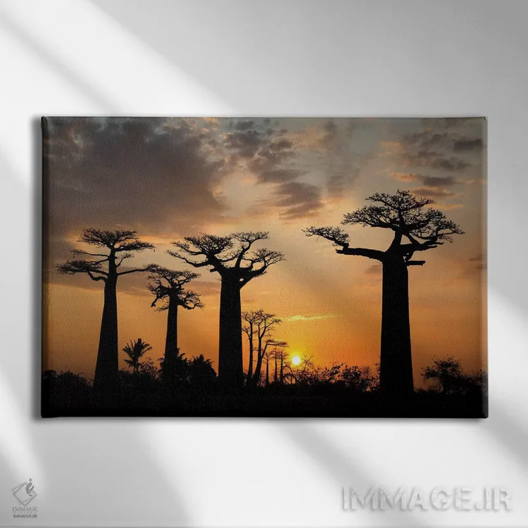تابلو ماداگاسکار، مورونداوا، مسیر بائوباب‌ها. درخت بائوباب گرندیدیر(ادانسونیا گرندی‌دیه‌ری) در هنگام غروب آفتاب اثر الن گاف - نمای پرسپکتیو محصول