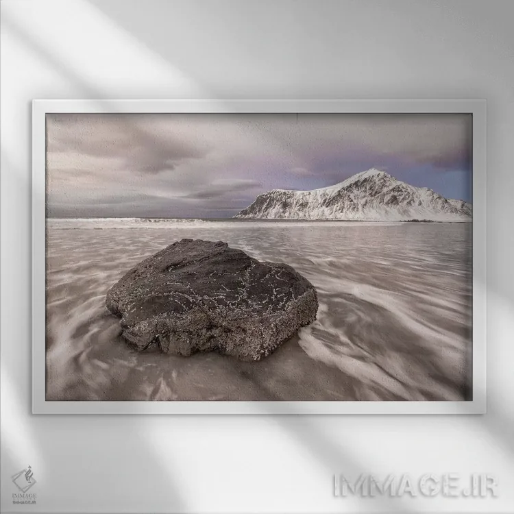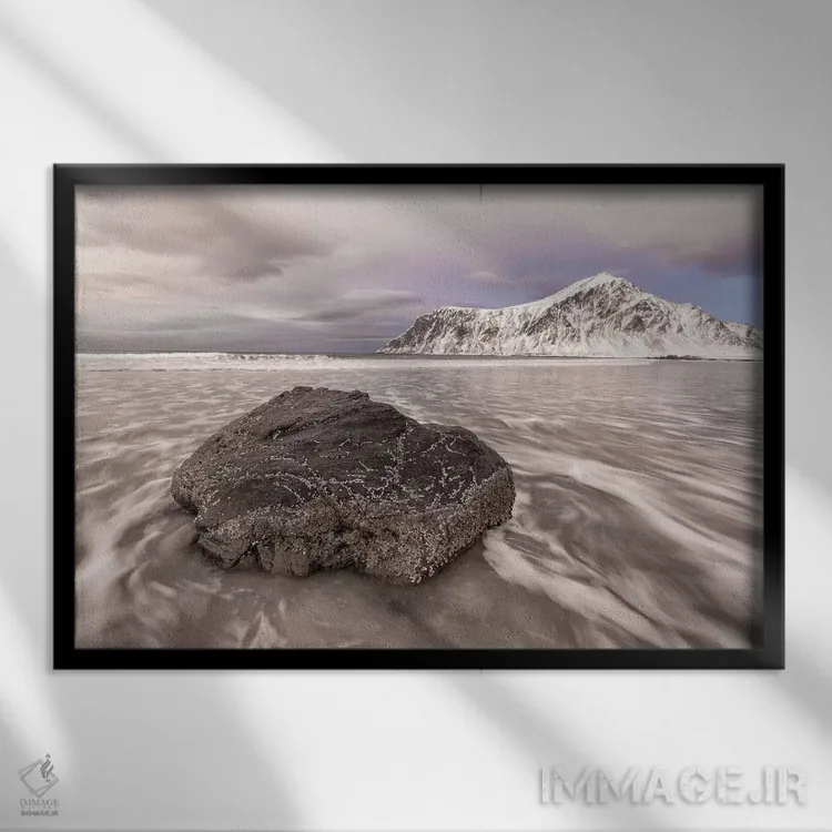 برای دیواری که میخواهید سلیقهتان را آرام و دقیق نشان بدهد، «نروژ، لوفوتن. ساحل در کرانه جنوبی جزیره موسکنس الگوهای زیبایی ایجاد میکند» اثرِ «الن گاف» روی دیوار، تمیز و دقیق دیده میشود؛ برای اتاق کار و گوشهٔ مطالعه پیشنهاد میشود. به فضا حس «گالری خانگی» میدهد، بدون اینکه اغراق کند.