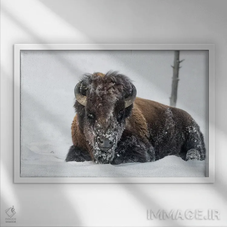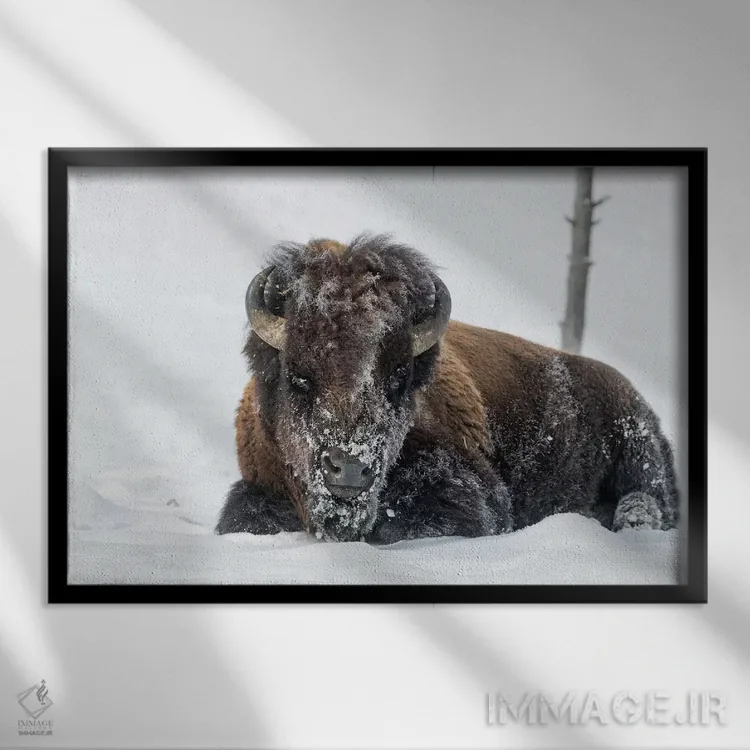 اگر میخواهید دیوار کمی سرزندگیِ محترمانه داشته باشد، «آمریکا، وایومینگ، پارک ملی یلواستون. یک بوفالوی نر که پس از جستجو برای چمن با برف پوشیده شده است» اثرِ «الن گاف» برای دکورهای مینیمال، یک نقطهٔ توجه میسازد، برای دکورهایی با رنگهای خنثی گزینهٔ مناسبیست. با نورپردازی نقطهای، جذابتر هم میشود.