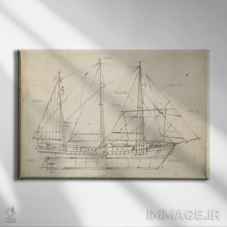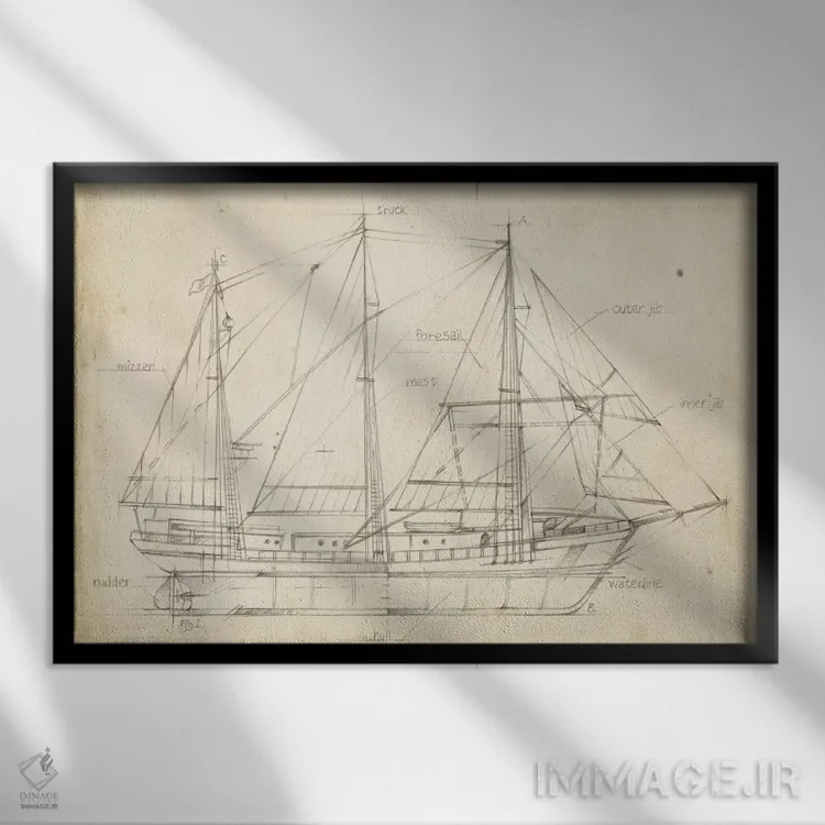 تابلو دکوراتیو نقشه فنی قایق بادبانی اثر اتان هارپر