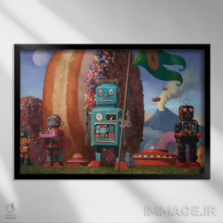 براساس پالت ترکیبی اثر، قاب تیک گرم (چوبی) پیشنهاد اول است و مشکی مات (فریم متوسط) مکمل. برای سفارشهای پروژهای با ابعاد و قابهای اختصاصی با ایماژ در تماس باشید.