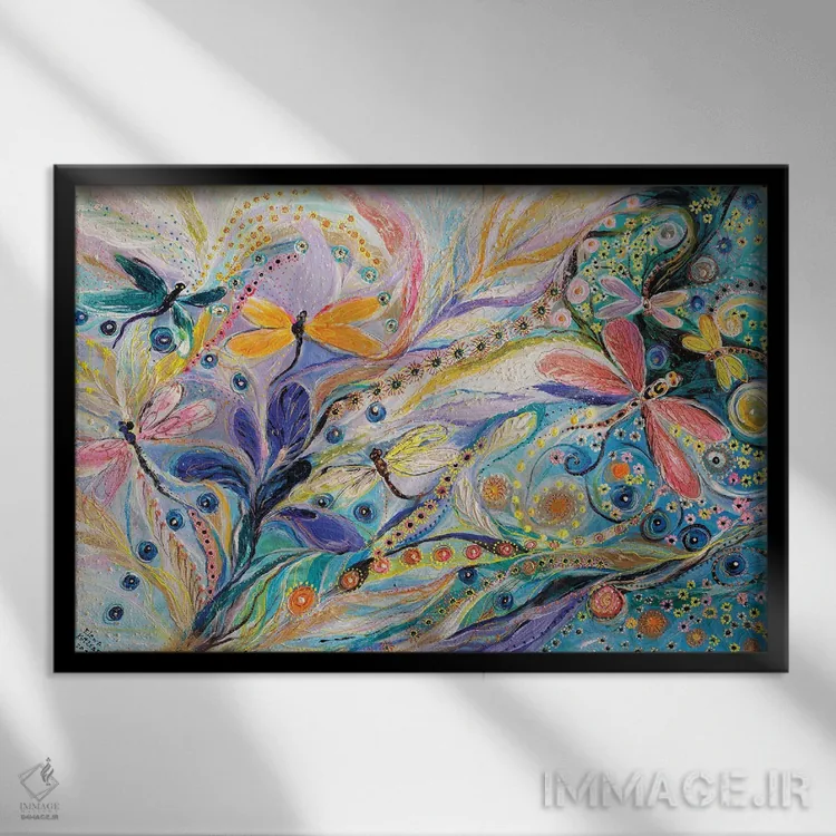 تابلو انتزاعی گل ها و سنجاقک ها اثر النا کوتلیارکر