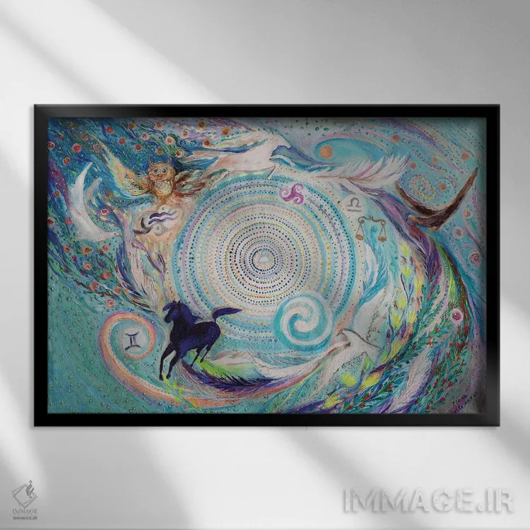 براساس پالت ترکیبی اثر، قاب تیک گرم (چوبی) پیشنهاد اول است و مشکی مات (فریم متوسط) مکمل. برای سفارشهای پروژهای با ابعاد و قابهای اختصاصی با ایماژ در تماس باشید.