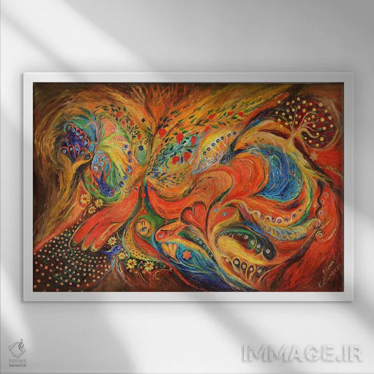 براساس پالت ترکیبی اثر، قاب تیک گرم (چوبی) پیشنهاد اول است و مشکی مات (فریم متوسط) مکمل. برای سفارشهای پروژهای با ابعاد و قابهای اختصاصی با ایماژ در تماس باشید.