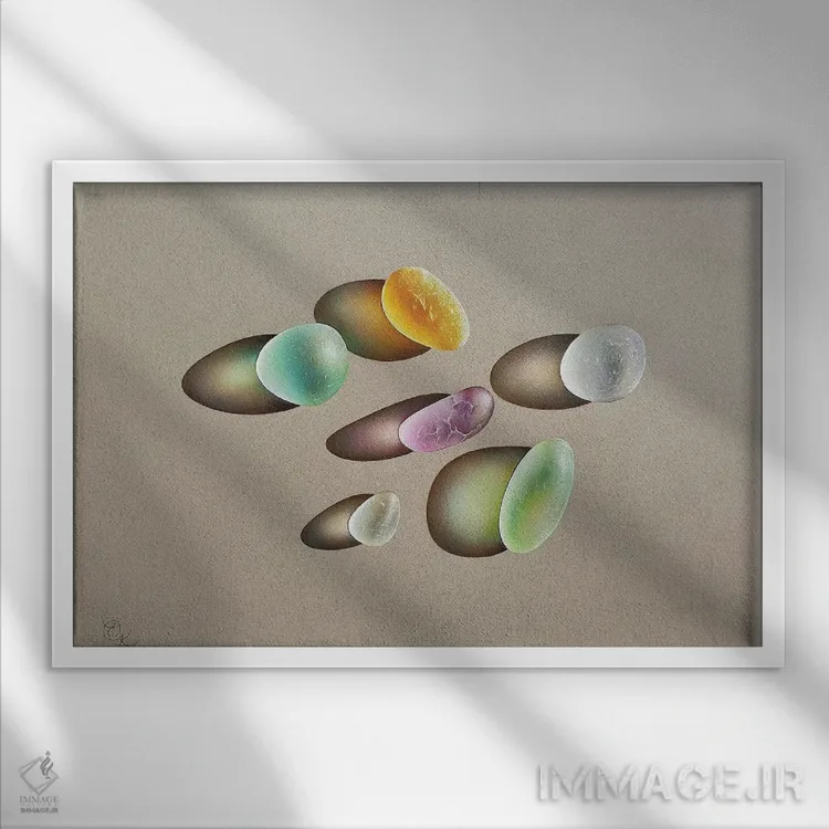 براساس پالت گرم اثر، قاب بلوط روشن (چوبی) پیشنهاد اول است و استخوانی ملایم مکمل. برای سفارشهای پروژهای با ابعاد و قابهای اختصاصی با ایماژ در تماس باشید.