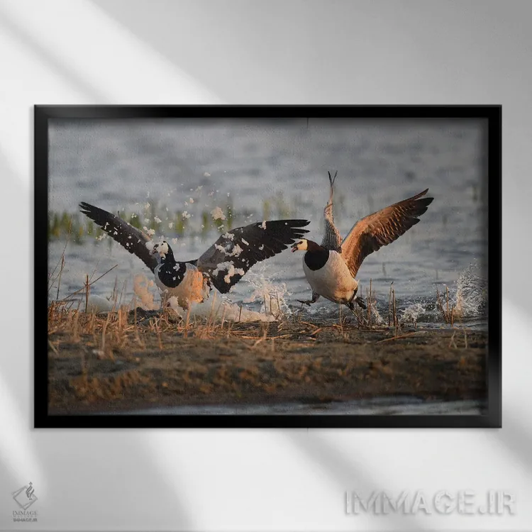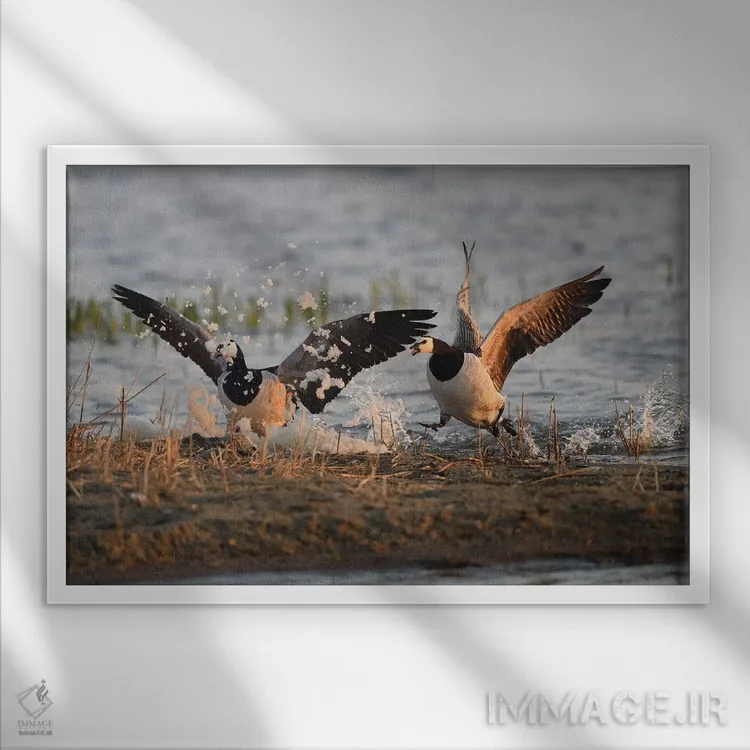اگر میخواهید دیوار کمی سرزندگیِ محترمانه داشته باشد، «جشن کف غازهای کلهسفید» اثرِ «المر وایس» حس طبیعت را بیدغدغه وارد خانه میکند، برای دکورهای مدرن و مینیمال گزینهٔ مناسبیست. در کنار گیاهان و نور طبیعی، جذابتر هم میشود.