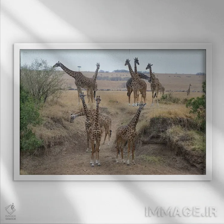 «گله زرافهها» اثرِ «المر وایس» از آن کارهاییست که حس طبیعت را بیدغدغه وارد خانه میکند؛ برای دیوار کنار میز کار انتخاب خوبیست. در کنار گیاهان و نور طبیعی، جذابتر هم میشود.