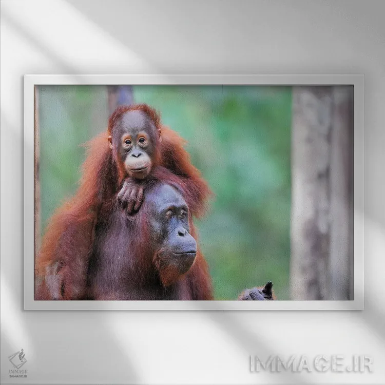 برای دکورهای صمیمی، «مادر اورانگوتان و فرزندش» اثرِ «المر وایس» بافت و جزئیات را طوری نشان میدهد که نگاه میماند؛ برای نشیمنهای خانوادگی انتخابی خوشسلیقه است. با نورپردازی نقطهای، جذابتر هم میشود.
