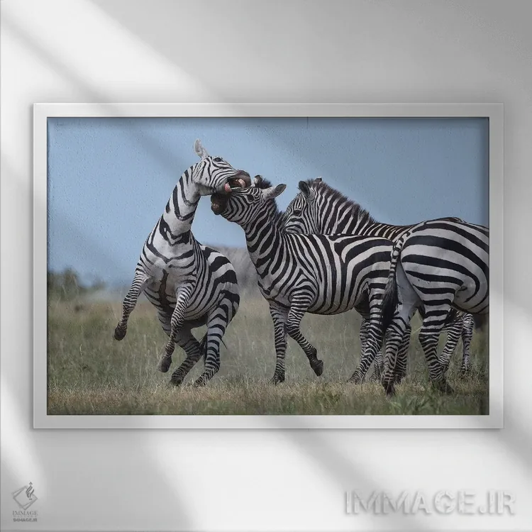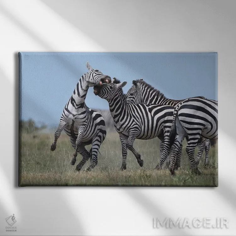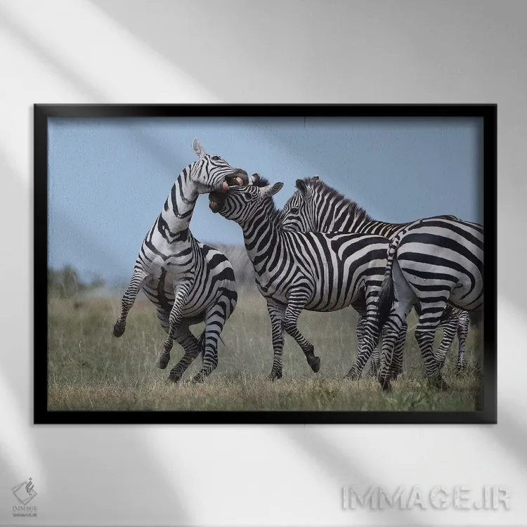 در «گورخرهای در حال نزاع» اثرِ «المر وایس»، شخصیت حیوانات با زبانِ پرداختِ هنری روایت میشود؛ مناسب برای نشیمن، اتاق نوجوان یا فضای کار خلاق.