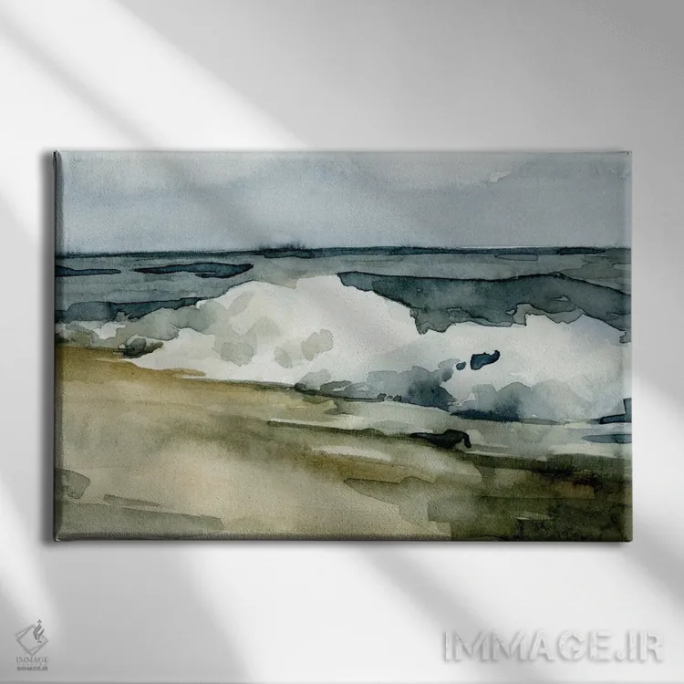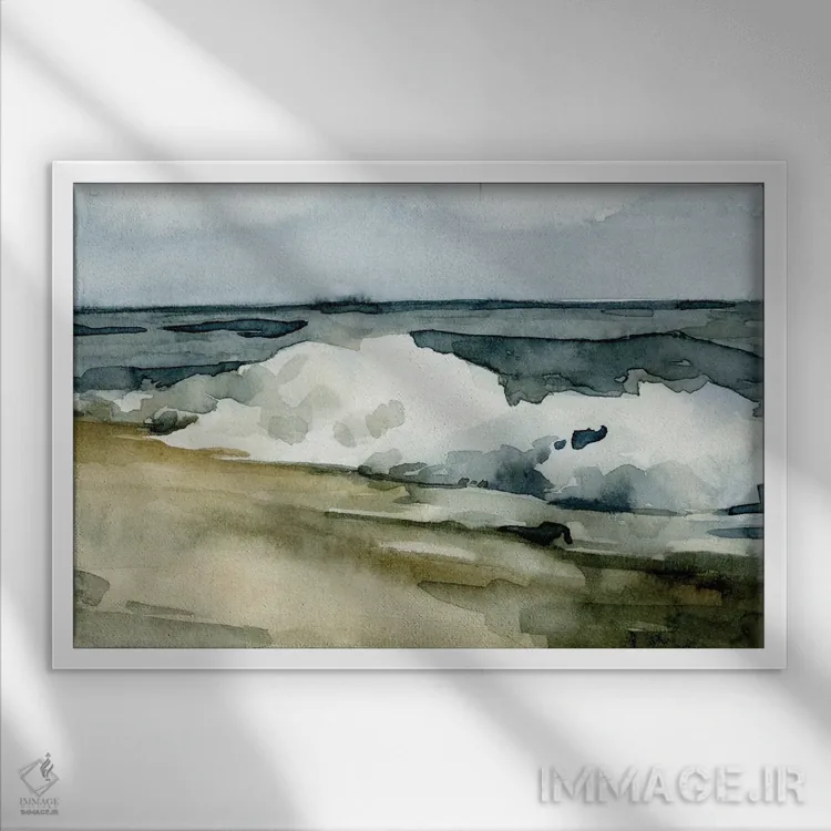 «موجهای آبرنگی آزاد ۲» اثرِ «اما کارولین» در فضای دکور ساحلی، کنار پارچههای روشن و اکسسوریهای طبیعی (حصیر/چوب) عالی هماهنگ میشود.