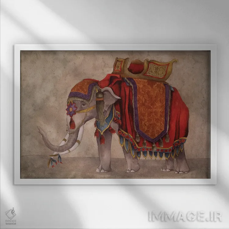 «فیلهای آیینی ۱» اثرِ «الیزابت مدلی» از آن کارهاییست که در کنار رنگهای خنثی، تضاد دلچسبی میسازد؛ برای خانههایی با چوب و پارچههای گرم انتخاب خوبیست. با قاب چوبی یا مشکی، حس مرتبتری پیدا میکند.
