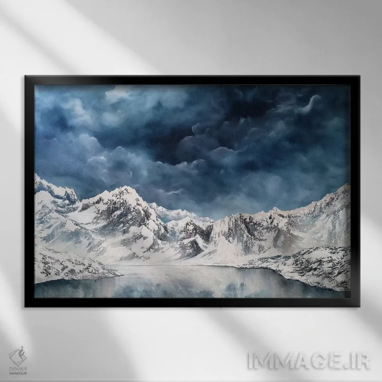 براساس پالت سرد اثر، قاب سفید مات (فریم باریک) پیشنهاد اول است و نقرهای برسخورده (متالیک) مکمل. برای سفارشهای پروژهای با ابعاد و قابهای اختصاصی با ایماژ در تماس باشید.