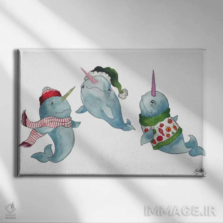 تابلو دکوراتیو نارووال های کریسمسی اثر الیزابت مدلی