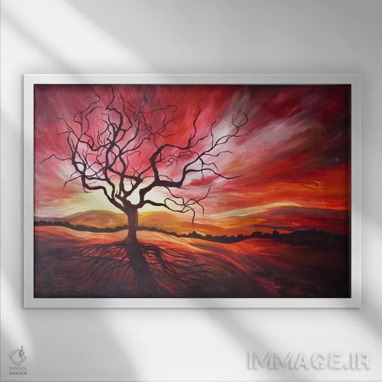 براساس پالت گرم اثر، قاب تیک گرم (چوبی) پیشنهاد اول است و مشکی مات (فریم متوسط) مکمل. برای سفارشهای پروژهای با ابعاد و قابهای اختصاصی با ایماژ در تماس باشید.