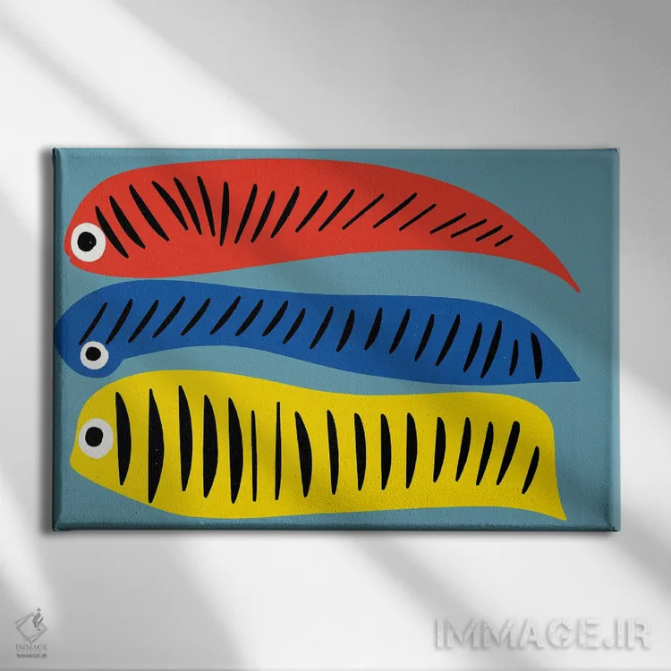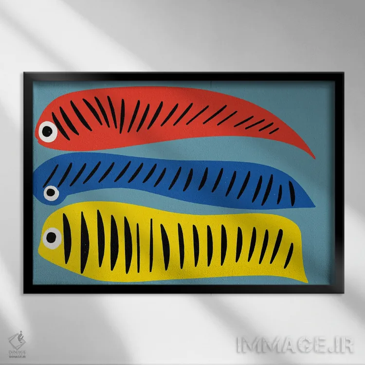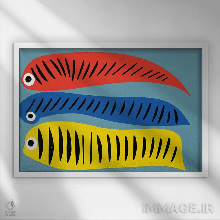 اگر به آثار حیوانات علاقه دارید، «ماهیهای قرمز، آبی و زرد» اثرِ «امانوئل سیگنورینو» مثل یک امضای بامزه اما متین عمل میکند، برای خانههایی با چوب و پارچههای گرم گزینهٔ مناسبیست. در کنار گیاهان و نور طبیعی، جذابتر هم میشود.